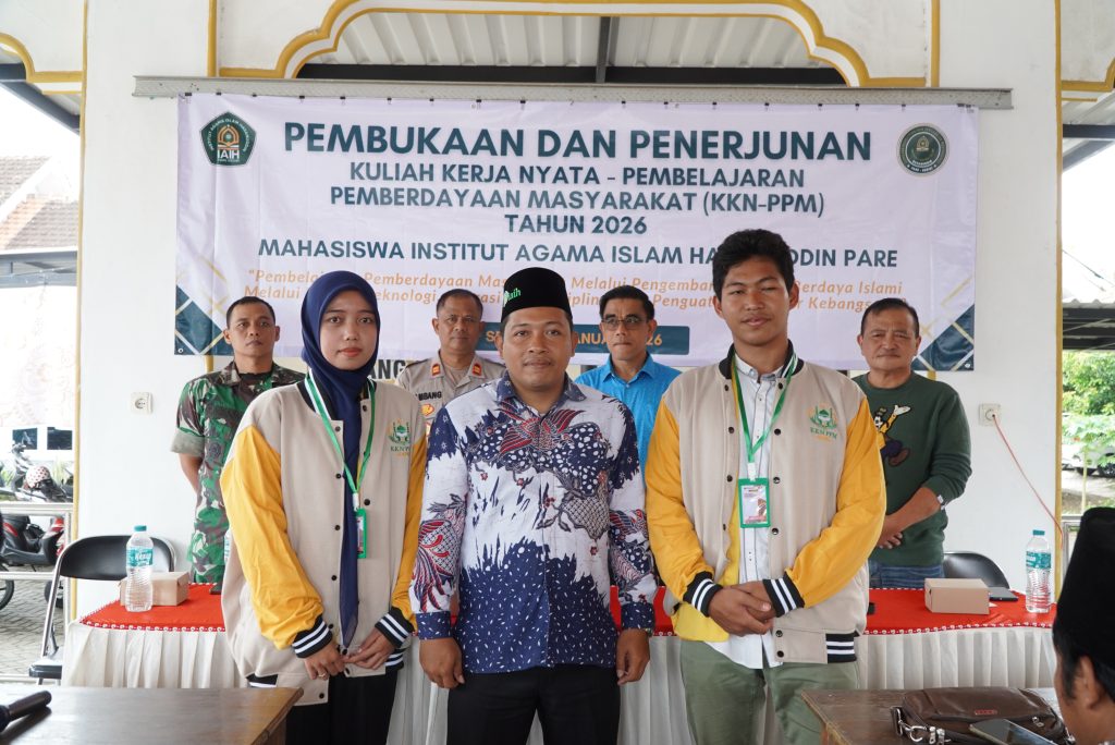 Acara puncak ditandai dengan pembukaan resmi KKN-PPM 2026 oleh Rektor IAI Hasanuddin Pare, Dr. Ali Muchasan, M.Pd, yang dilanjutkan dengan penyerahan atribut KKN secara simbolis berupa ID Card dan jaket kepada perwakilan mahasiswa sebagai tanda resmi dimulainya kegiatan KKN-PPM.